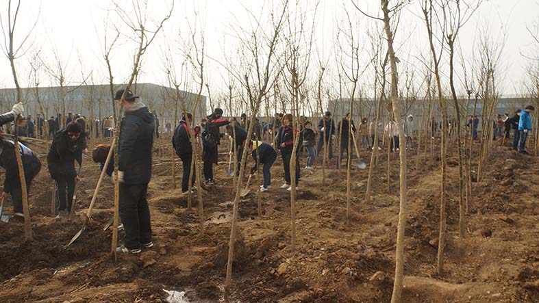 全體參加植樹活動(dòng)的員工準(zhǔn)時(shí)到位,在結(jié)束了短暫的人員組隊(duì),劃分區(qū)域和領(lǐng)取工具等準(zhǔn)備工作后,迅速的投入到植樹活動(dòng)當(dāng)中。各小組成員分工明確,積極踴躍。很多隊(duì)伍在組長(zhǎng)的帶領(lǐng)下,領(lǐng)樹苗、放樹苗、填土、培土、澆水相互配合,干得熱火朝天。許多小組高效率高質(zhì)量的完成本隊(duì)植樹任務(wù)后,迅速投入到其他隊(duì)伍中,互幫互助。在全體員工有組織有紀(jì)律的高效協(xié)作的前提下,在不到兩個(gè)半小時(shí)的時(shí)間內(nèi),共計(jì)完成1800棵樹苗的栽種工作,綠化面積達(dá)12000多平方米。此次植樹活動(dòng),進(jìn)一步改善了控感廠區(qū)的生產(chǎn)環(huán)境,把原本空曠的廠區(qū)西南角的一片空地裝點(diǎn)得煥然一新!