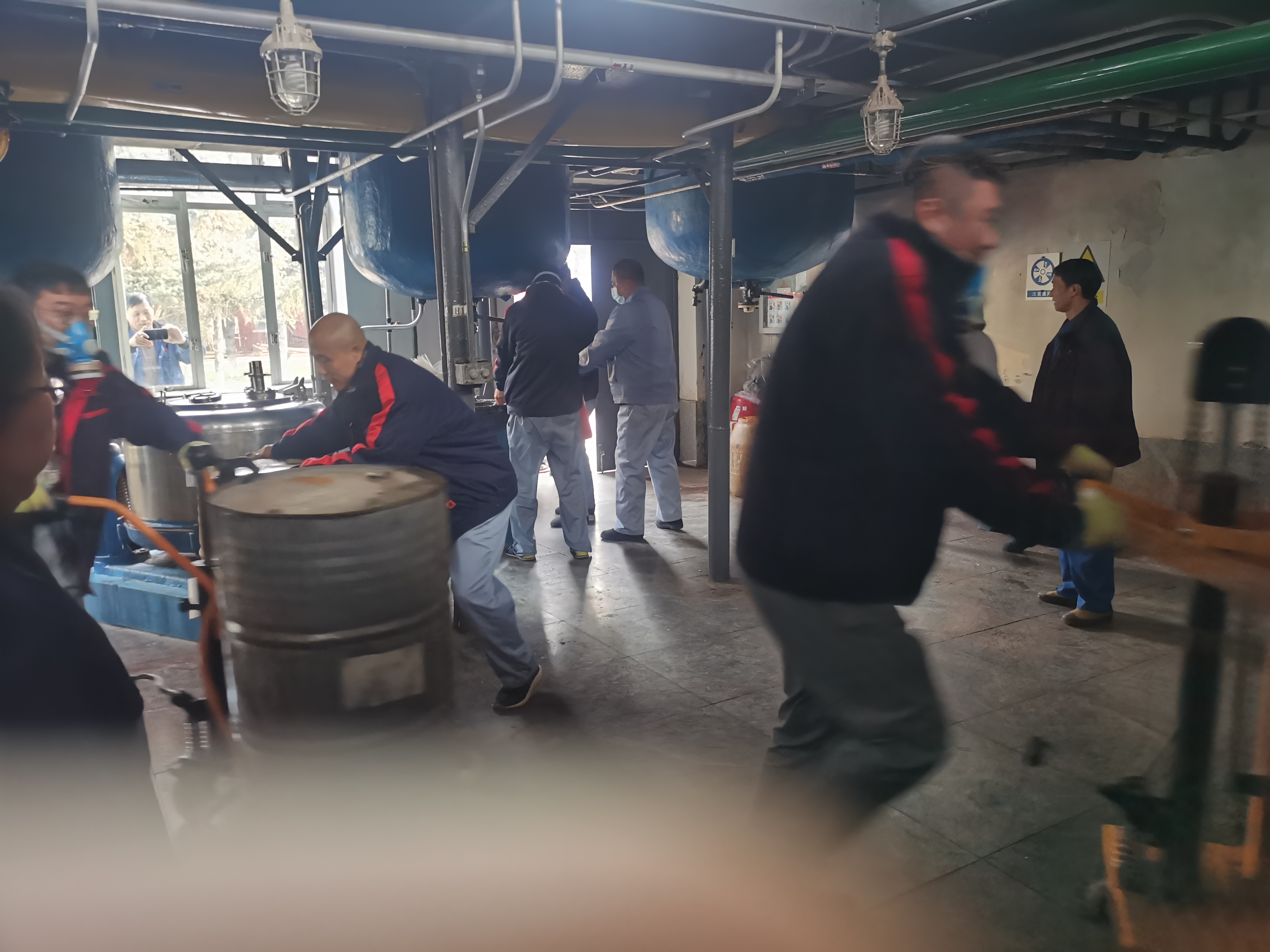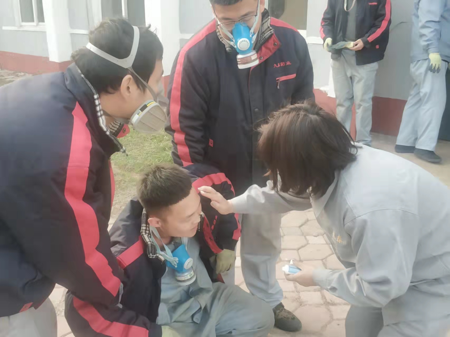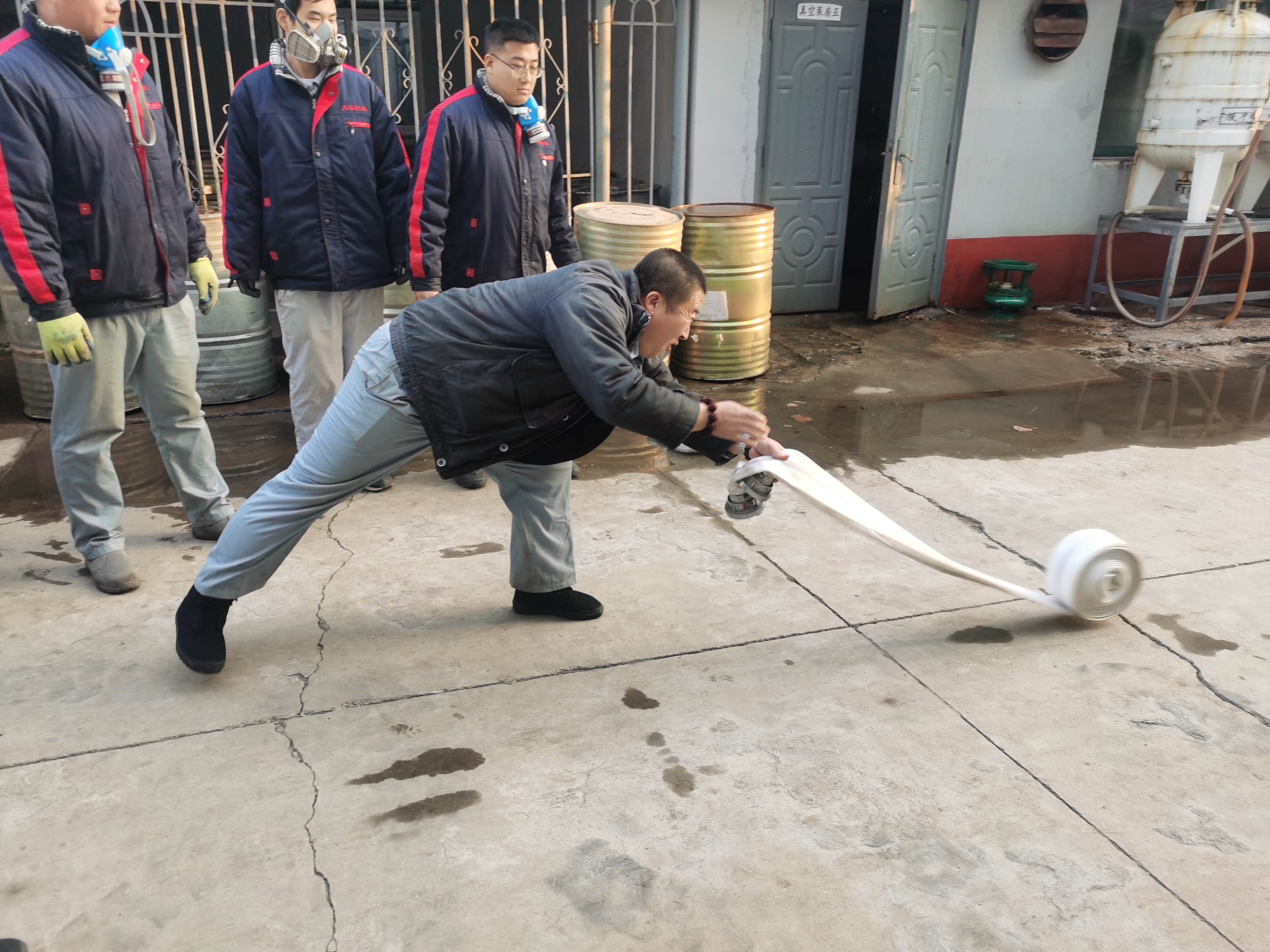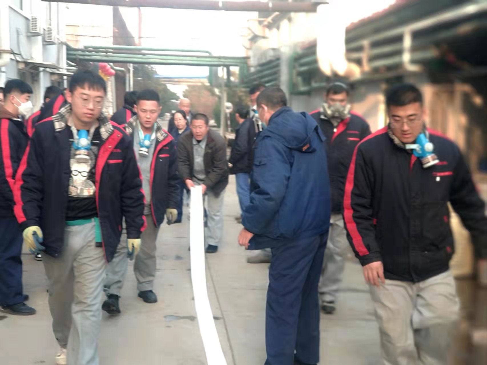演練模擬原料車間合成一室發(fā)生火災(zāi)爆炸,車間立即啟動應(yīng)急預(yù)案,進(jìn)行實(shí)際演練。