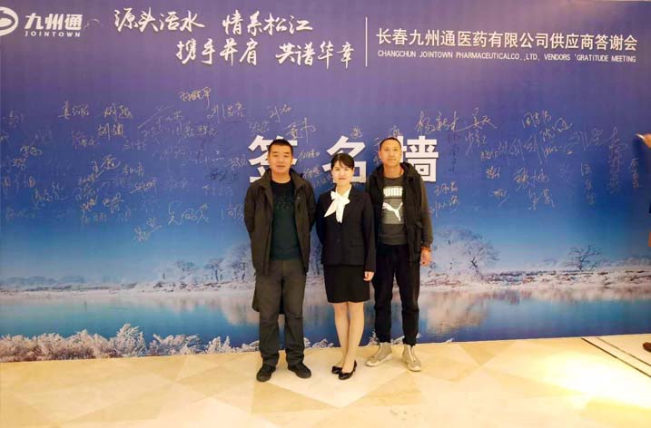 公司重點客戶長春九州通醫(yī)藥有限公司在公司總部舉行了供應(yīng)商答謝會,公司營銷中心銷售一部總監(jiān)單力軍攜當?shù)貥I(yè)務(wù)經(jīng)理參加了此次會議,公司品種在此次會議中較好地完成了促銷任務(wù)。